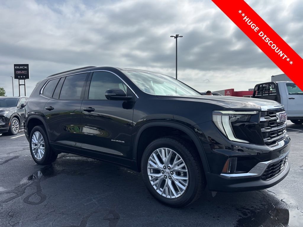 Pricing excludes tax, tag, license fees, dealers $129 doc fee, $1,995 in dealer addendum. See dealer for exact pricing. Some discounts require dealership to arrange financing, price not available with 0% or incentivized rates. See dealer for details. This 2025 GMC Acadia comes equipped with these features Elevation Premium Package (3-Channel Programmable Universal Home Remote, 6-Way Power Front Passenger Seat Adjuster, 7-Passenger Seating (2-2-3 Seating Configuration), Auto-Dimming Inside Rear-View Mirror, CoreTec Seat Trim, Front Passenger Power Lumbar Seat Adjuster, and Wheels: 20 x 8 Bright Silver Aluminum), Luxury Package (8 Diagonal Head-Up Display, Heated Rear Outboard Seating Positions, Heated Wiper Park, and Laminated Acoustic Glass), Preferred Equipment Group 4SC, FWD, After Dark Cloth, 12 Speakers, 18 x 7.5 Aluminum Wheels, 2-Way Driver Power Lumbar Seat Adjuster, 3.49 Final Drive Axle Ratio, 3rd row seats: split-bench, 4-Way Manual Front Passenger Seat Adjuster, 4-Wheel Disc Brakes, 8-Passenger Seating (2-3-3 Seating Configuration), 8-Way Power Driver Seat Adjuster, ABS brakes, Air Conditioning, Alloy wheels, AM/FM radio: SiriusXM with 360L, Apple CarPlay/Android Auto, Auto High-beam Headlights, Auto-dimming Rear-View mirror, Automatic temperature control, Bodyside moldings, Bose Premium 12-Speaker System with Sub-Woofer, Brake assist, Bumpers: body-color, Cloth Seat Trim, Compass, Delay-off headlights, Driver door bin, Driver vanity mirror, Dual front impact airbags, Dual front side impact airbags, Electronic Stability Control, Emergency communication system: OnStar Services capable, Exterior Parking Camera Rear, Four wheel independent suspension, Front anti-roll bar, Front Bucket Seats, Front Center Armrest, Front dual zone A/C, Front fog lights, Front reading lights, Fully automatic headlights, Heated door mirrors, Heated Driver and Front Passenger Seats, Heated front seats, Heated steering wheel, Illuminated entry, Leather steering wheel, Low tire pressure warning, Navigation System, Occupant sensing airbag, Outside temperature display, Overhead airbag, Overhead console, Panic alarm, Passenger door bin, Passenger vanity mirror, Power door mirrors, Power driver seat, Power Liftgate, Power steering, Power windows, Radio data system, Radio: 15 Diagonal Premium GMC Infotainment System, Rear air conditioning, Rear anti-roll bar, Rear reading lights, Rear seat center armrest, Rear side impact airbag, Rear window defroster, Rear window wiper, Remote keyless entry, Security system, SiriusXM with 360L, Speed control, Speed-sensing steering, Split folding rear seat, Spoiler, Sport steering wheel, Steering wheel mounted audio controls, Tachometer, Telescoping steering wheel, Tilt steering wheel, Traction control, Trip computer, Turn signal indicator mirrors, Variably intermittent wipers, and Voltmeter.