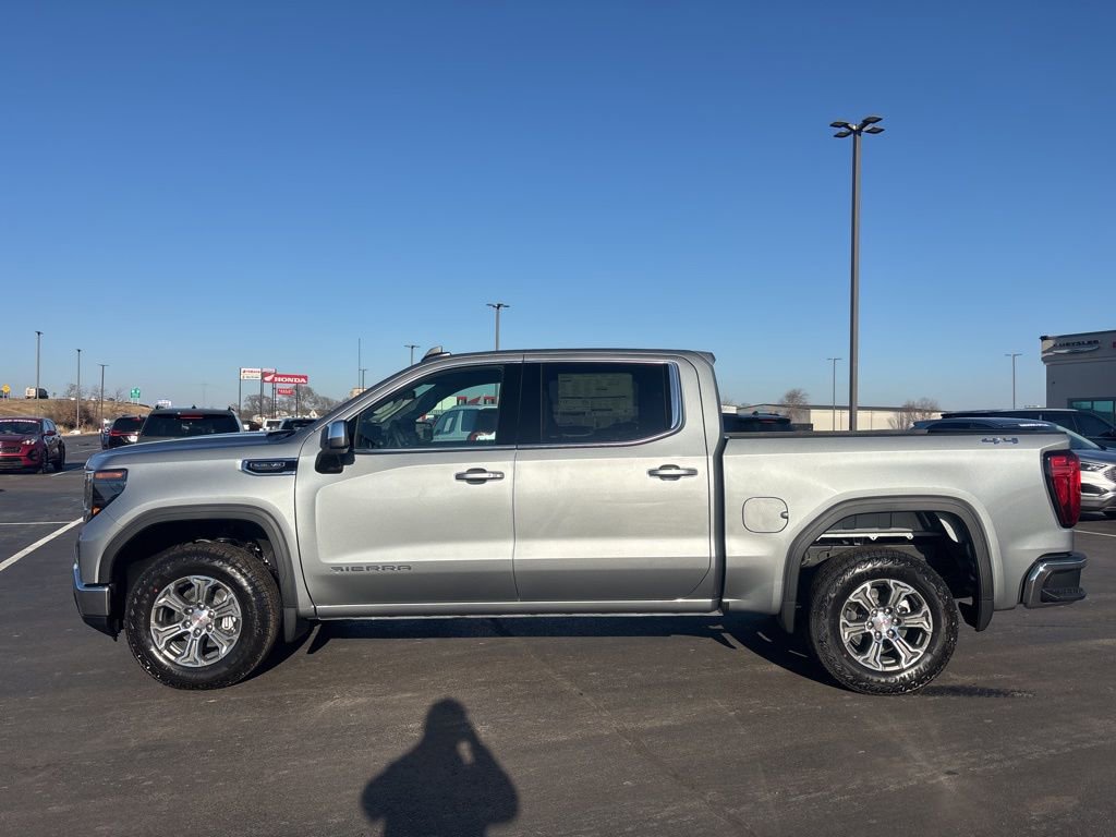 Pricing excludes tax, tag, license fees, dealers $129 doc fee, $1,995 in dealer addendum. See dealer for exact pricing. Some discounts require dealership to arrange financing, price not available with 0% or incentivized rates. See dealer for details. This 2026 GMC Sierra 1500 comes equipped with these features Remote Start Package (Electric Rear-Window Defogger, Remote Vehicle Starter System, and Theft Deterrent System (unauthorized Entry)), SLE Convenience Package (Dual-Zone Automatic Climate Control and LED Cargo Area Lighting), SLE Value Package (Auto-Locking Rear Differential), Standard Suspension Package, Trailering Package (Hitch Guidance), 10-Speed Automatic, 4WD, Jet Blk Clth Cloth, 10-Way Power Driver Seat Adjuster with Lumbar, 120-Volt Bed Mounted Power Outlet, 120-Volt Interior Power Outlet, 2 Charge/Data USB Ports, 2 Type-C Charge-Only Rear USB Ports, 220 Amp Alternator, 3.23 Rear Axle Ratio, 4-Way Manual Passenger Seat Adjuster, 4-Wheel Disc Brakes, 6 Speakers, 6-Speaker Audio System Feature, ABS brakes, Air Conditioning, Alloy wheels, AM/FM radio: SiriusXM with 360L, Apple CarPlay/Android Auto, Auto High-beam Headlights, Automatic Emergency Braking, Automatic temperature control, Brake assist, Buckle to Drive, Bumpers: chrome, Chrome Header with Medium Silver Grille Insert Bars, Cloth Seat Trim, Color-Keyed Carpeting Floor Covering, Compass, Deep-Tinted Glass, Delay-off headlights, Driver door bin, Driver vanity mirror, Dual front impact airbags, Dual front side impact airbags, Electronic Stability Control, Emergency communication system: OnStar, Following Distance Indicator, Forward Collision Alert, Front 40/20/40 Split-Bench Seat, Front anti-roll bar, Front Center Armrest w/Storage, Front dual zone A/C, Front Frame-Mounted Black Recovery Hooks, Front Pedestrian Braking, Front reading lights, Front Rubberized-Vinyl Floor Mats, Front wheel independent suspension, Fully automatic headlights, HD Rear Vision Camera, Heated door mirrors, Heated Driver and Front Outboard Passenger Seating, Heated front seats, Heated steering wheel, Illuminated entry, Integrated Trailer Brake Controller, IntelliBeam Automatic High Beam on/Off, Keyless Open and Start, Lane Keep Assist with Lane Departure Warning, Low tire pressure warning, Manual Tilt-Wheel and Telescoping Steering Column, Navigation System, Occupant sensing airbag, OnStar Services Capable, Outside temperature display, Overhead airbag, Overhead console, Panic alarm, Passenger door bin, Passenger vanity mirror, Power Door Locks, Power door mirrors, Power driver seat, Power Front Windows with Driver Express Up/Down, Power Front Windows with Passenger Express Down, Power Rear Windows with Express Down, Power steering, Power windows, Push Button Start, Radio data system, Radio: Premium GMC Infotainment Audio System, Rear reading lights, Rear Rubberized-Vinyl Floor Mats, Rear step bumper, Rear window defroster, Remote keyless entry, Security system, SiriusXM with 360L Trial Subscription, Speed control, Speed-sensing steering, Split folding rear seat, Steering Wheel Audio Controls, Steering wheel mounted audio controls, Tachometer, Telescoping steering wheel, Tilt steering wheel, Traction control, Trip computer, Variably intermittent wipers, Voltmeter, Wheels: 17 x 8 Bright Silver Painted Aluminum, Wheels: 18 x 8.5 6-Spoke Machined Aluminum, Wi-Fi Hotspot Capable, and Wireless Apple CarPlay/Wireless Android Auto.