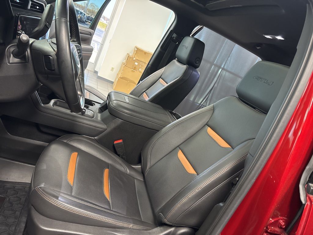 CARFAX One-Owner. Clean CARFAX. Volcanic Red Tintcoat AT4 4WD 10-Speed Automatic Duramax 6.6L V8 Turbodiesel **4WD**, **LOCAL TRADE**, **NON SMOKER**, **KEYLESS ENTRY**, **REMOTE START**, **ADAPTIVE CRUISE CONTROL**, **WE DELIVER ANYWHERE**, **REAR VIEW CAMERA**, **BLUETOOTH HANDES FREE CALLING**, **TOWING PACKAGE**, 10-Speed Automatic, 4WD, Jet Black With Kalahari Accents Leather, 10-Way Power Driver Seat Adjuster w/Lumbar, 10-Way Power Passenger Seat Adjuster w/Lumbar, 120-Volt Bed Mounted Power Outlet, 120-Volt Instrument Panel Power Outlet, 2 Charge-Only Rear USB Ports, 2 Charge/Data USB Ports Inside Center Console, 2 USB Ports, 2-Speed Active Transfer Case, 220-Amp Alternator, 4-Wheel Disc Brakes, 7 Speakers, ABS brakes, Adaptive Cruise Control, Air Conditioning, Alloy wheels, AM/FM radio: SiriusXM with 360L, Apple CarPlay/Android Auto, AT4 Preferred Package, AT4 Premium Plus Package, Auto High-beam Headlights, Auto-dimming door mirrors, Auto-dimming Rear-View mirror, Automatic Emergency Braking, Automatic temperature control, Bed View Camera w/2 Trailer Camera Provisions, Black Front & Rear Molded Splash Guards (LPO), Bose Premium 7-Speaker Sound System, Brake assist, Buckle to Drive, Bumpers: body-color, Compass, Deep-Tinted Glass, Delay-off headlights, Driver door bin, Driver Memory, Driver vanity mirror, Dual front impact airbags, Dual front side impact airbags, Electric Rear-Window Defogger, Electronic Stability Control, Engine Block Heater, Exhaust Brake, Floor-Mounted Center Console, Following Distance Indicator, Forward Collision Alert, Front anti-roll bar, Front Bucket Seats, Front Center Armrest, Front dual zone A/C, Front fog lights, Front Pedestrian Braking, Front Prem Floor Liners w/Removable Carpet Insert, Front Rain-Sensing Wipers, Front reading lights, Front wheel independent suspension, Fully automatic headlights, Gloss Black Header Grille & Grille Insert Bars, GMC Connected Access Capable, Gooseneck/5th Wheel Prep Package, HD Surround Vision, Heated 2nd Row Outboard Seats, Heated door mirrors, Heated Driver & Front Outboard Passenger Seats, Heated front seats, Heated rear seats, Heated steering wheel, Heavy-Duty 80 Amp Battery, Hill Descent Control, Hitch Guidance w/Hitch View, Illuminated entry, In-Vehicle Trailering System App, Inside Rearview Auto-Dimming Rear Camera Mirror, Integrated Trailer Brake Controller, IntelliBeam Automatic High Beam On/Off, Keyless Open & Start, Lane Departure Warning System, LED Cargo Area Lighting, LED Smoked Amber Roof Marker Lamps, Low tire pressure warning, Manual Tilt-Wheel/Telescoping Steering Column, Memory seat, Multicolor 15" Diagonal Head-Up Display, Occupant sensing airbag, Off-Road High Clearance Step (LPO), Off-Road Suspension, OnStar & GMC Connected Services Capable, Outside temperature display, Overhead airbag, Overhead console, Panic alarm, Passenger door bin, Passenger vanity mirror, Perforated Leather-Appointed Front Seat Trim, Pickup Box, Power door mirrors, Power driver seat, Power Front Passenger Windows w/Express Up/Down, Power passenger seat, Power Sliding Rear Window w/Defogger, Power steering, Power Sunroof, Power windows, Power-Retractable Black Assist Steps, Preferred Equipment Group 4SB, Premium audio system: Premium GMC Infotainment System, Push Button Start, Radio: AM/FM w/Premium GMC Infotainment System, Rain sensing wipers, Rear Cross Traffic Alert, Rear Prem Floor Liners w/Removable Carpet Insert, Rear reading lights, Rear seat center armrest, Rear step bumper, Rear Underseat Storage (LPO), Rear Wheelhouse Liners, Rear window defroster, Remote keyless entry, Remote Vehicle Starter System, Safety Alert Seat, Security system, SiriusXM w/360L, Speed control, Speed-sensing steering, Split folding rear seat, Spray-On Bedliner w/AT4 Logo, Steering Wheel Audio Controls, Steering wheel mounted audio controls, Tachometer, Technology Package, Telescoping steering wheel, Tilt steering wheel, Traction control, Trailer Cam Provisions & Trailer Viewing So
