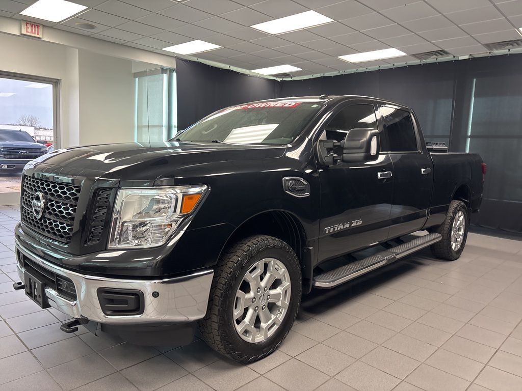 Priced below KBB Fair Purchase Price! CARFAX One-Owner. Clean CARFAX. Magnetic Black Metallic SV 4WD 6-Speed Automatic 5.0L V8 **4WD**, **LOCAL TRADE**, **ONE OWNER**, **KEYLESS ENTRY**, **WE DELIVER ANYWHERE**, **REAR VIEW CAMERA**, **BLUETOOTH HANDES FREE CALLING**, 110V Bed Outlet, 2 Illuminated USB-A Ports In Back Of Center Console, 2nd Row Flat Fold Storage Box, 3.916 Axle Ratio, 4-Wheel Disc Brakes, 6 Speaker System, 6 Speakers, ABS brakes, Air Conditioning, AM/FM radio: SiriusXM, Auto Dual Zone HVAC, Auto On/Off Headlights, Auto-Dimming Rear-View Mirror, Blind Spot Warning w/Rear Cross Traffic Alert, Block heater, Brake assist, Bumpers: chrome, Carpet Floor Mats, CD player, Chrome Interior Door Locks, Cloth Seat Trim, Convex Spotter Mirror, Driver door bin, Driver vanity mirror, Dual front impact airbags, Dual front side impact airbags, Electronic Stability Control, Front & Rear Parking Sensors, Front anti-roll bar, Front Center Armrest w/Storage, Front reading lights, Front Split Bench Seat (40/20/40), Front wheel independent suspension, Heated door mirrors, Heated Front Captain's Seats w/Center Console, Illuminated entry, Intelligent Key System, Leather Wrapped Steering Wheel, LED Under Rail Bed Lighting, Low tire pressure warning, NissanConnect featuring Apple CarPlay and Android Auto, Outside temperature display, Overhead airbag, Overhead console, Painted Rear Bumper, Panic alarm, Passenger door bin, Passenger vanity mirror, Power door mirrors, Power Slide Rear Window w/Defogger, Power steering, Power windows, Radio data system, Radio: Nissan Navigation System w/Voice Guidance, Radio: NissanConnect AM/FM w/SiriusXM, Rain Sensing Wipers, Rear anti-roll bar, Rear HVAC Vents, Rear seat center armrest, Rear step bumper, Rear Under Seat Storage (M11), Rear window defroster, Remote keyless entry, Running Boards, Security system, Siri Eyes Free, Speed control, Speed-sensing steering, Speed-Sensitive Wipers, Splash Guards (B93), Split folding rear seat, Spray-On Bedliner, Steering wheel mounted audio controls, SV Convenience Package, SV Utility Package, Tachometer, Tailgate Area Illumination, Telescoping steering wheel, Tilt steering wheel, Traction control, Turn signal indicator mirrors, Universal Garage Door Opener, Utilitrack System w/4 Tie-Down Cleats, Variably intermittent wipers, Voltmeter, Wheels: 17" x 7.5" Silver Styled Steel, Wheels: 20" x 7.5" Painted Alloy.