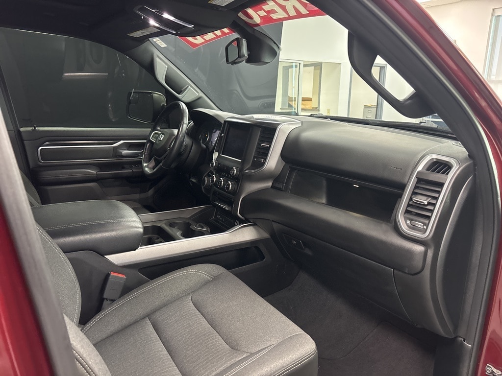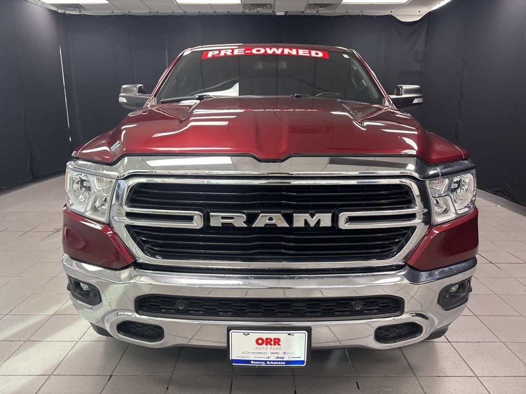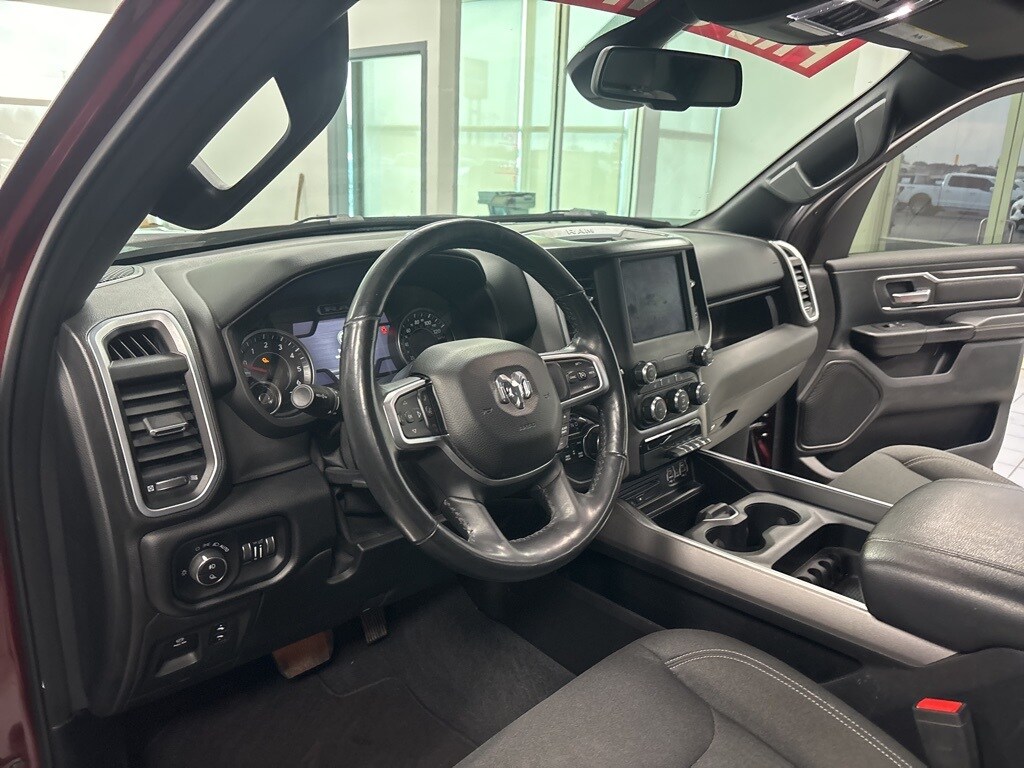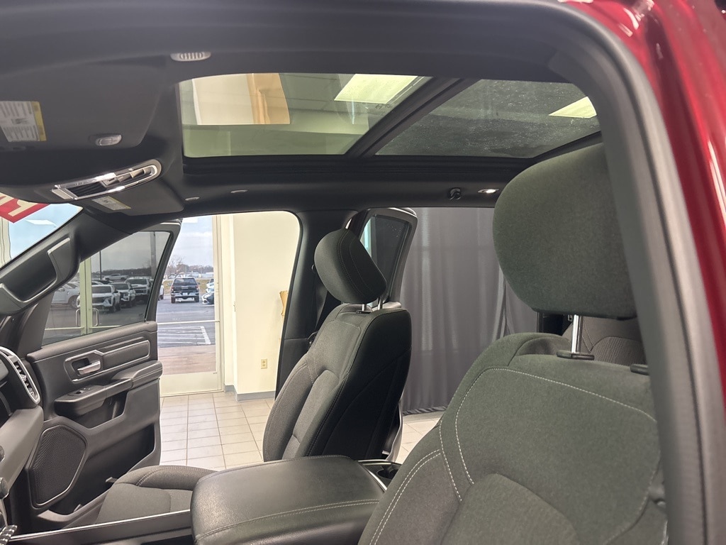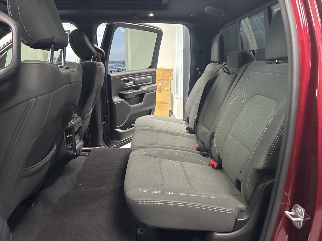 Clean CARFAX. Delmonico Red Pearlcoat Big Horn/Lone Star 4WD 8-Speed Automatic HEMI 5.7L V8 Multi Displacement VVT 1-Year SiriusXM Radio Service, 2 USB Full Function/Charge Only Media Hub, 3 Rear Seat Head Restraints, 3.21 Rear Axle Ratio, 4 Way Front Headrests, 4-Wheel Disc Brakes, 48V Belt Starter Generator, 6 Speakers, 8.4" Touchscreen Display, 9 Amplified Speakers w/Subwoofer, ABS brakes, Air Conditioning, Air Conditioning ATC w/Dual Zone Control, Alloy wheels, AM/FM radio, Apple CarPlay, Auto-Dimming Exterior Driver Mirror, Auto-Dimming Rear-View Mirror, Big Horn IP Badge, Big Horn Non-BSG Level 2 Group w/Media Hub (DISC), Brake assist, Bumpers: chrome, Class IV Receiver Hitch, Cloth Bench Seat, Cluster 7.0" TFT Color Display, Compass, Dampened Tailgate, Delay-off headlights, Dome Dual LED Reading Lamp, Driver door bin, Dual front impact airbags, Dual front side impact airbags, Dual-Pane Panoramic Sunroof, Electronic Stability Control, Exterior Mirrors Courtesy Lamps, Exterior Mirrors w/Supplemental Signals, Foam Bottle Insert (Door Trim Panel), For More Info, Call 800-643-2112, Front & Rear Rubber Floor Mats, Front anti-roll bar, Front Center Armrest w/Storage, Front fog lights, Front reading lights, Front Seat Back Map Pockets, Front wheel independent suspension, Fully automatic headlights, Glove Box Lamp, Google Android Auto, GPS Antenna Input, Heated door mirrors, Heated Front Seats, Heated Steering Wheel, Illuminated entry, Integrated Center Stack Radio, Leather steering wheel, Low tire pressure warning, Occupant sensing airbag, Outside temperature display, Overhead airbag, Overhead console, Overhead LED Lamps, Panic alarm, ParkSense Front/Rear Park Assist w/Stop, ParkView Rear Back-Up Camera, Passenger door bin, Passenger vanity mirror, Power 4-Way Driver Lumbar Adjust, Power 8-Way Driver Seat, Power Adjustable Pedals, Power door mirrors, Power Heated Fold Away Mirrors, Power steering, Power windows, Power-Folding Mirrors, Premium Overhead Console, Quick Order Package 25Z Big Horn/Lone Star, Radio data system, Radio: Uconnect 3 w/5" Display, Radio: Uconnect 4 w/8.4" Display, Rear 60/40 Folding Seat, Rear anti-roll bar, Rear Dome w/On/Off Switch Lamp, Rear Power Sliding Window, Rear seat center armrest, Rear step bumper, Rear Window Defroster, Remote keyless entry, Remote Start System, Security Alarm, Single Disc Remote CD Player, SiriusXM Satellite Radio, Speed control, Split folding rear seat, Steering Wheel Mounted Audio Controls, Sun Visors w/Illuminated Vanity Mirrors, Tachometer, Telescoping steering wheel, Tilt steering wheel, Traction control, Trip computer, Universal Garage Door Opener, Variably intermittent wipers, Voltmeter, Wheels: 18" x 8".