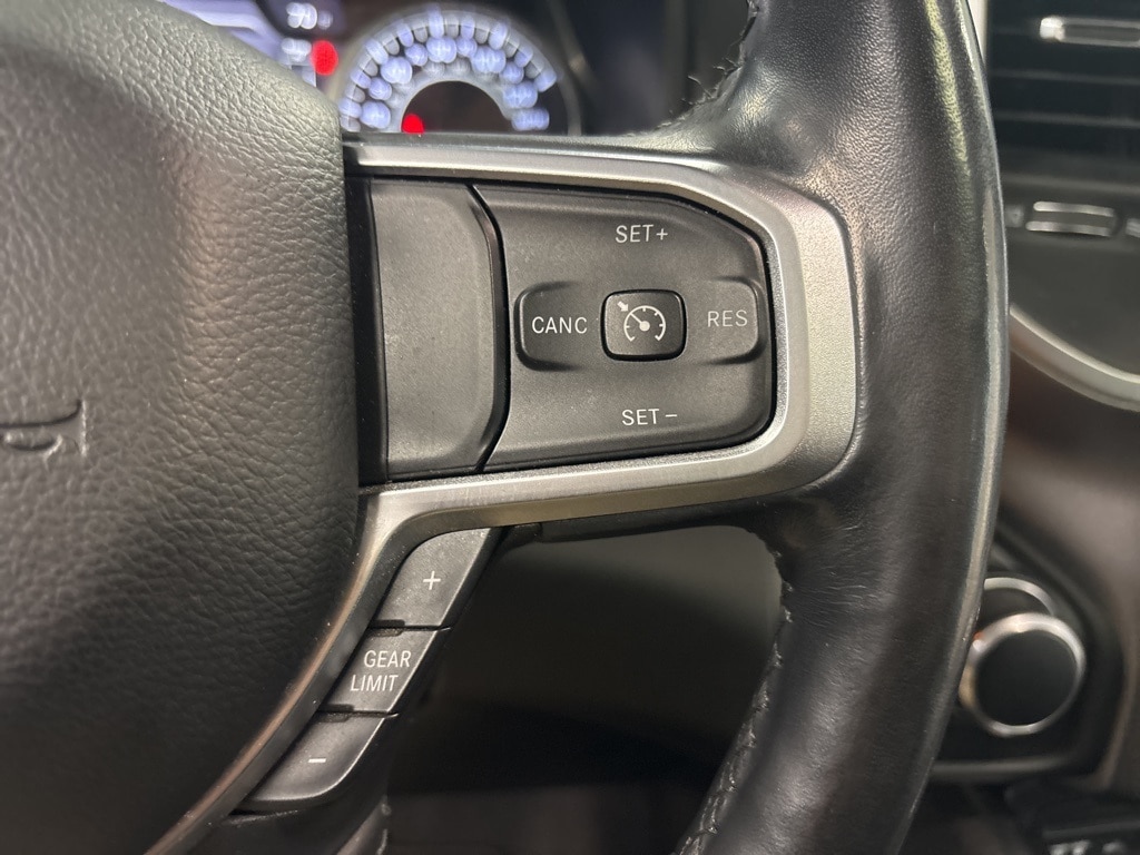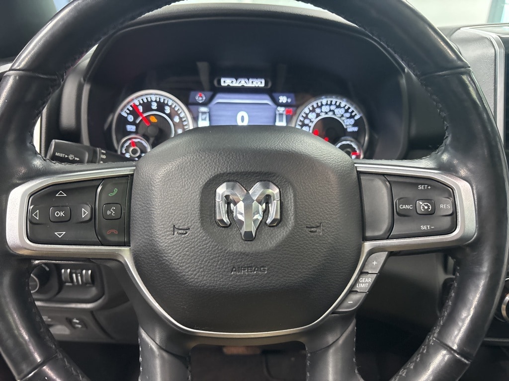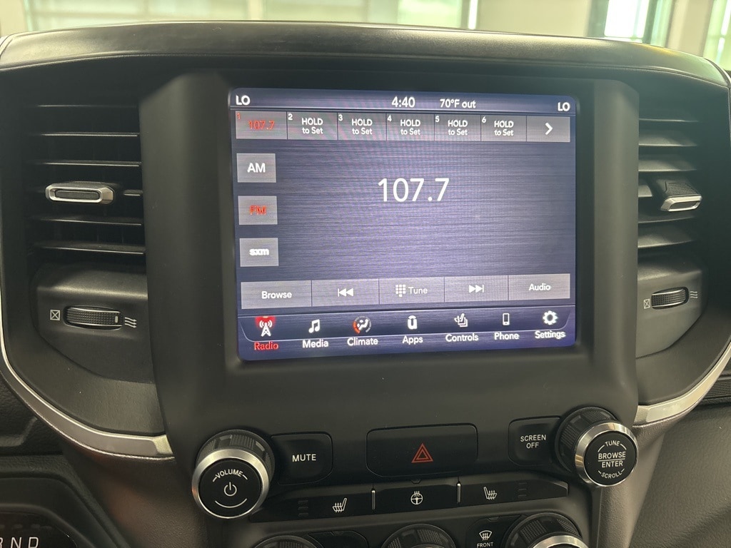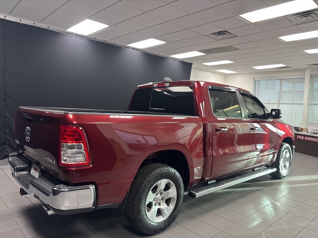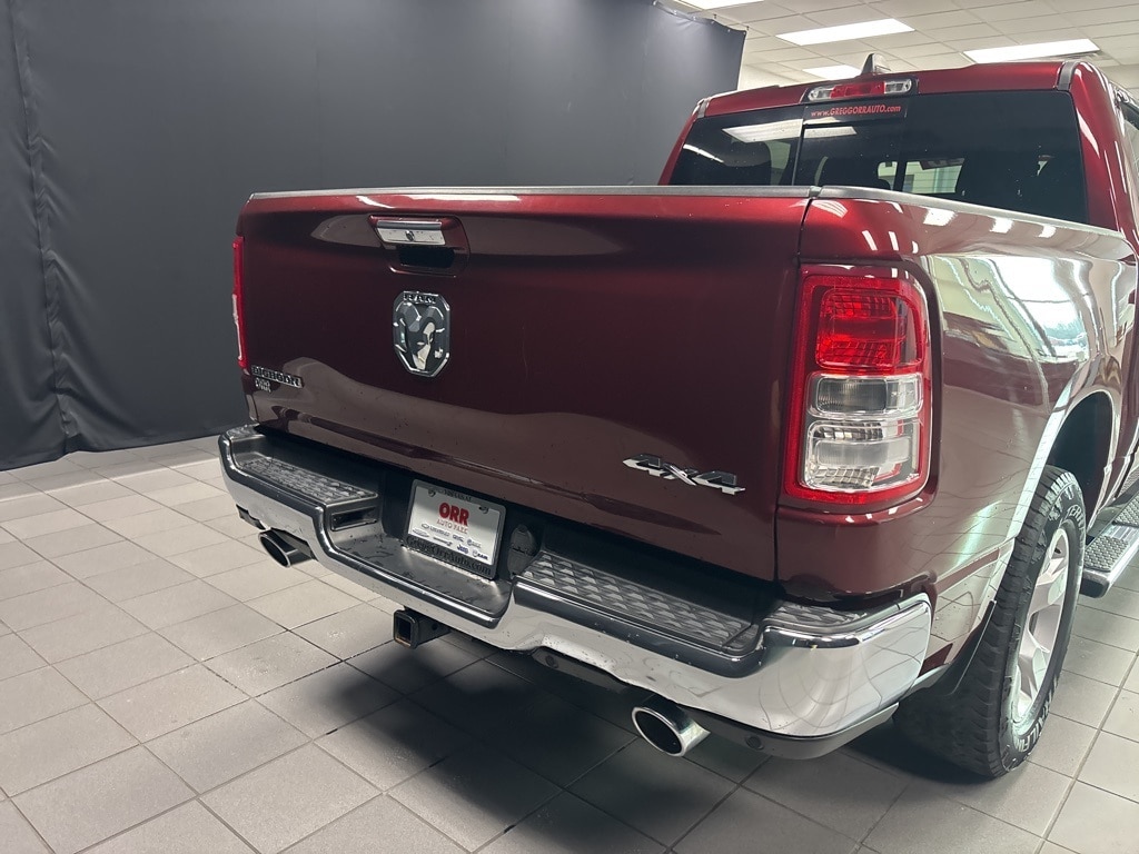 Clean CARFAX. Delmonico Red Pearlcoat Big Horn/Lone Star 4WD 8-Speed Automatic HEMI 5.7L V8 Multi Displacement VVT 1-Year SiriusXM Radio Service, 2 USB Full Function/Charge Only Media Hub, 3 Rear Seat Head Restraints, 3.21 Rear Axle Ratio, 4 Way Front Headrests, 4-Wheel Disc Brakes, 48V Belt Starter Generator, 6 Speakers, 8.4" Touchscreen Display, 9 Amplified Speakers w/Subwoofer, ABS brakes, Air Conditioning, Air Conditioning ATC w/Dual Zone Control, Alloy wheels, AM/FM radio, Apple CarPlay, Auto-Dimming Exterior Driver Mirror, Auto-Dimming Rear-View Mirror, Big Horn IP Badge, Big Horn Non-BSG Level 2 Group w/Media Hub (DISC), Brake assist, Bumpers: chrome, Class IV Receiver Hitch, Cloth Bench Seat, Cluster 7.0" TFT Color Display, Compass, Dampened Tailgate, Delay-off headlights, Dome Dual LED Reading Lamp, Driver door bin, Dual front impact airbags, Dual front side impact airbags, Dual-Pane Panoramic Sunroof, Electronic Stability Control, Exterior Mirrors Courtesy Lamps, Exterior Mirrors w/Supplemental Signals, Foam Bottle Insert (Door Trim Panel), For More Info, Call 800-643-2112, Front & Rear Rubber Floor Mats, Front anti-roll bar, Front Center Armrest w/Storage, Front fog lights, Front reading lights, Front Seat Back Map Pockets, Front wheel independent suspension, Fully automatic headlights, Glove Box Lamp, Google Android Auto, GPS Antenna Input, Heated door mirrors, Heated Front Seats, Heated Steering Wheel, Illuminated entry, Integrated Center Stack Radio, Leather steering wheel, Low tire pressure warning, Occupant sensing airbag, Outside temperature display, Overhead airbag, Overhead console, Overhead LED Lamps, Panic alarm, ParkSense Front/Rear Park Assist w/Stop, ParkView Rear Back-Up Camera, Passenger door bin, Passenger vanity mirror, Power 4-Way Driver Lumbar Adjust, Power 8-Way Driver Seat, Power Adjustable Pedals, Power door mirrors, Power Heated Fold Away Mirrors, Power steering, Power windows, Power-Folding Mirrors, Premium Overhead Console, Quick Order Package 25Z Big Horn/Lone Star, Radio data system, Radio: Uconnect 3 w/5" Display, Radio: Uconnect 4 w/8.4" Display, Rear 60/40 Folding Seat, Rear anti-roll bar, Rear Dome w/On/Off Switch Lamp, Rear Power Sliding Window, Rear seat center armrest, Rear step bumper, Rear Window Defroster, Remote keyless entry, Remote Start System, Security Alarm, Single Disc Remote CD Player, SiriusXM Satellite Radio, Speed control, Split folding rear seat, Steering Wheel Mounted Audio Controls, Sun Visors w/Illuminated Vanity Mirrors, Tachometer, Telescoping steering wheel, Tilt steering wheel, Traction control, Trip computer, Universal Garage Door Opener, Variably intermittent wipers, Voltmeter, Wheels: 18" x 8".