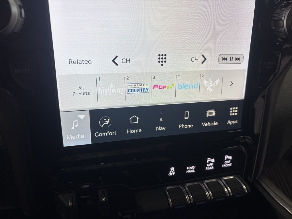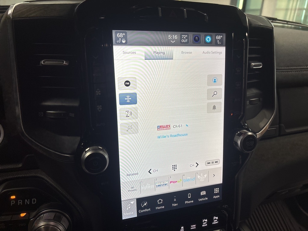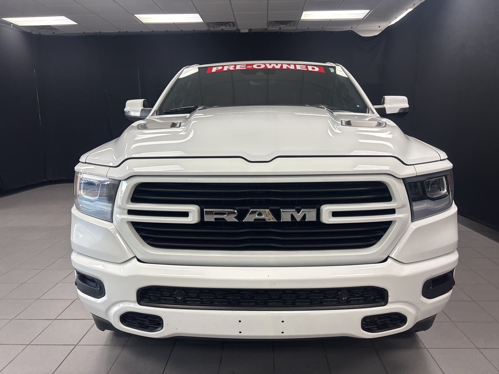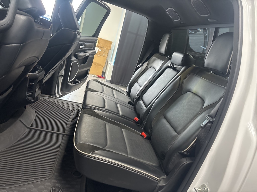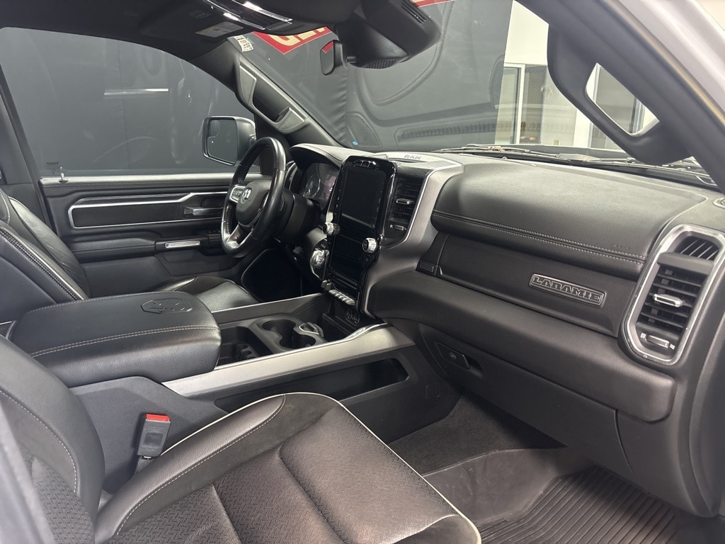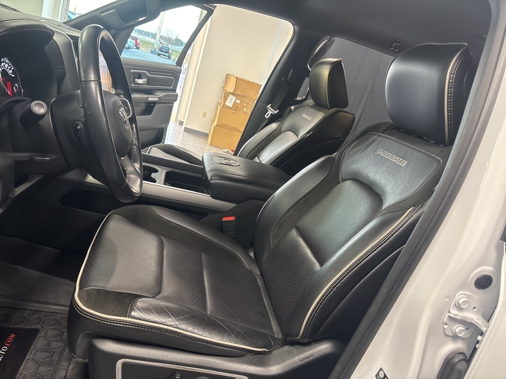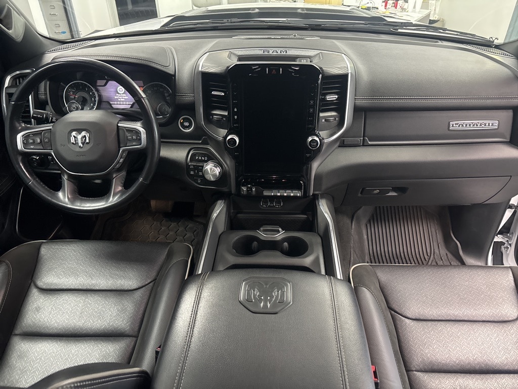 CARFAX One-Owner. Bright White Clearcoat Laramie 4WD 8-Speed Automatic HEMI 5.7L V8 Multi Displacement VVT eTorque **NAVIGATION**, **4WD**, **LOCAL TRADE**, **ONE OWNER**, **LEATHER INTERIOR**, **KEYLESS ENTRY**, **REMOTE START**, **ADAPTIVE CRUISE CONTROL**, **RUNNING BOARDS**, **REAR VIEW CAMERA**, **BLUETOOTH HANDES FREE CALLING**, **TOWING PACKAGE**, #1 Seat Foam Cushion, 10 Speakers, 12" Touchscreen Display, 2nd Row In Floor Storage Bins, 3 Rear Seat Head Restraints, 33 Gallon Fuel Tank, 4 Way Front Headrests, 4-Wheel Disc Brakes, 48V Belt Starter Generator, 4G LTE Wi-Fi Hot Spot, ABS brakes, Adjustable pedals, Air Conditioning, Alloy wheels, AM/FM radio: SiriusXM with 360L, Anti-Spin Differential Rear Axle, Apple CarPlay, Apple CarPlay/Android Auto, Audio memory, Auto High Beam Headlamp Control, Auto-dimming door mirrors, Auto-Dimming Exterior Driver Mirror, Auto-dimming Rear-View mirror, Automatic temperature control, Bed Utility Group, Black Interior Accents, Blind Spot & Cross Path Detection, Body Color Exterior Mirrors, Body Color Front Bumper, Body Color Premium Power Mirrors, Body Color Rear Bumper w/Step Pads, Brake assist, Bumpers: chrome, Chrome Exterior Mirrors, Class IV Receiver Hitch, Compass, Connected Travel & Traffic Services, Connectivity - US/Canada, Convex Wide-Angle Exterior Mirror Insert, Delay-off headlights, Disassociated Touchscreen Display, Driver door bin, Driver Seat Memory, Driver vanity mirror, Dual front impact airbags, Dual front side impact airbags, Electric Shift-On-Demand Transfer Case, Electronic Stability Control, Exterior Mirrors Courtesy Lamps, Exterior Mirrors w/Heating Element, Exterior Mirrors w/Memory, Exterior Mirrors w/Supplemental Signals, Foam Bottle Insert (Door Trim Panel), For Details, Visit DriveUconnect.com, For More Info, Call 800-643-2112, Front anti-roll bar, Front Center Armrest w/Storage, Front Door Accent Lighting, Front dual zone A/C, Front fog lights, Front LED Fog Lamps, Front reading lights, Front Seat Back Map Pockets, Front wheel independent suspension, Fully automatic headlights, Garage door transmitter, Global Telematics Box Module (TBM), Google Android Auto, GPS Antenna Input, GPS Navigation, Grille Surround 3 Body Color Tex 2 Black, HD Radio, Heated door mirrors, Heated Front Seats, Heated front seats, Heated Steering Wheel, Heated steering wheel, Illuminated entry, Integrated Center Stack Radio, Integrated Voice Command w/Bluetooth, Laramie Level 1 Equipment Group, Leather steering wheel, Leather Trim 40/20/40 Bench Seat, LED Reflector Headlamps, Low tire pressure warning, Manufacturer's Statement of Origin, Memory seat, MOPAR 4 Adjustable Cargo Tie-Down Hooks, MOPAR Front & Rear Rubber Floor Mats, MOPAR Spray In Bedliner, Navigation System, Occupant sensing airbag, Outside temperature display, Overhead airbag, Overhead console, Panic alarm, ParkSense Front/Rear Park Assist w/Stop, ParkSense Front/Rear Park Assist w/Stop (DISC), ParkView Rear Back-Up Camera, Passenger door bin, Passenger vanity mirror, Pedal memory, Pick-Up Box Lighting, Power 2-Way Driver Lumbar Adjust, Power 2-Way Passenger Lumbar Adjust, Power 8-Way Driver & Passenger Seats, Power door mirrors, Power driver seat, Power passenger seat, Power steering, Power windows, Power-Folding Mirrors, Quick Order Package 27H Laramie, Radio data system, Radio: Uconnect 5 Nav w/12.0" Display, Radio: Uconnect 5 Nav w/8.4" Display, Rain Sensitive Windshield Wipers, RAM Grille Badge - Chrome, Rear 60/40 Folding Seat, Rear anti-roll bar, Rear Door Accent Lighting, Rear Power Sliding Window, Rear seat center armrest, Rear step bumper, Rear Window Defroster, Remote keyless entry, Remote Tailgate Release, Security system, SiriusXM Radio Service, SiriusXM w/360L, Speed control, Split folding rear seat, Sport Appearance Package, Sport Decal, Sport Performance Hood, Steering wheel mounted audio controls, Tachometer, Telescoping steering wheel, Tilt steering wheel, Traction control, Trailer Brake Control, Trip c