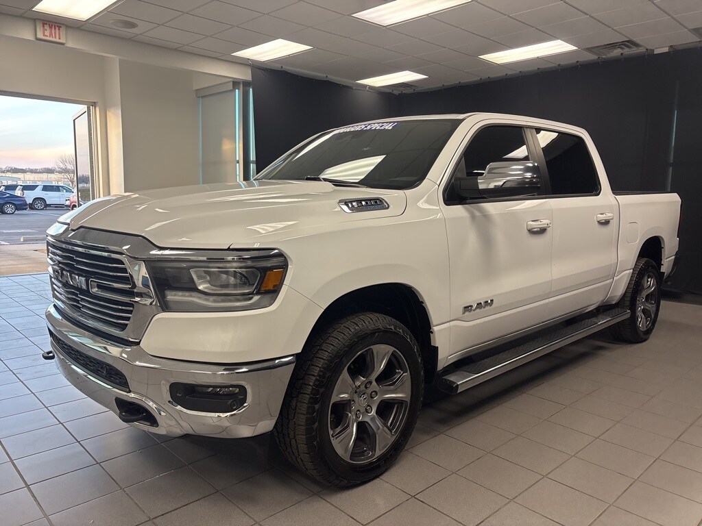 CARFAX One-Owner. Clean CARFAX. Bright White Clearcoat Laramie 4WD 8-Speed Automatic HEMI 5.7L V8 Multi Displacement VVT eTorque **NAVIGATION**, **4WD**, **LEATHER INTERIOR**, **KEYLESS ENTRY**, **REMOTE START**, **ADAPTIVE CRUISE CONTROL**, **RUNNING BOARDS**, **WE DELIVER ANYWHERE**, **REAR VIEW CAMERA**, **BLUETOOTH HANDES FREE CALLING**, **TOWING PACKAGE**, #1 Seat Foam Cushion, 10 Speakers, 12" Touchscreen Display, 2nd Row In Floor Storage Bins, 3 Rear Seat Head Restraints, 4 Way Front Headrests, 4-Wheel Disc Brakes, 48V Belt Starter Generator, 4G LTE Wi-Fi Hot Spot, ABS brakes, Adjustable pedals, Air Conditioning, Alloy wheels, AM/FM radio: SiriusXM with 360L, Apple CarPlay, Apple CarPlay/Android Auto, Audio memory, Auto High Beam Headlamp Control, Auto-dimming door mirrors, Auto-Dimming Exterior Driver Mirror, Auto-dimming Rear-View mirror, Automatic temperature control, Bed Utility Group, Blind Spot & Cross Path Detection, Brake assist, Bumpers: chrome, Chrome Exterior Mirrors, Class IV Receiver Hitch, Compass, Connected Travel & Traffic Services, Connectivity - US/Canada, Convex Wide-Angle Exterior Mirror Insert, Delay-off headlights, Disassociated Touchscreen Display, Driver door bin, Driver Seat Memory, Driver vanity mirror, Dual front impact airbags, Dual front side impact airbags, E-Locker Rear Axle, Electric Shift-On-Demand Transfer Case, Electronic Stability Control, Exterior Mirrors Courtesy Lamps, Exterior Mirrors w/Heating Element, Exterior Mirrors w/Memory, Exterior Mirrors w/Supplemental Signals, Foam Bottle Insert (Door Trim Panel), For Details, Visit DriveUconnect.com, For More Info, Call 800-643-2112, Front anti-roll bar, Front Center Armrest w/Storage, Front Door Accent Lighting, Front dual zone A/C, Front Extra HD Shock Absorbers, Front fog lights, Front LED Fog Lamps, Front License Plate Bracket, Front reading lights, Front Seat Back Map Pockets, Front wheel independent suspension, Fully automatic headlights, Garage door transmitter, Global Telematics Box Module (TBM), Google Android Auto, GPS Antenna Input, GPS Navigation, HD Radio, Heated door mirrors, Heated Front Seats, Heated front seats, Heated Steering Wheel, Heated steering wheel, Illuminated entry, Integrated Center Stack Radio, Integrated Voice Command w/Bluetooth, Laramie Level 1 Equipment Group, Leather steering wheel, Leather Trim 40/20/40 Bench Seat, LED Reflector Headlamps, Low tire pressure warning, Memory seat, MOPAR 4 Adjustable Cargo Tie-Down Hooks, MOPAR Front & Rear Rubber Floor Mats, MOPAR Spray In Bedliner, Navigation System, Occupant sensing airbag, Off Road Decals, Off Road Group, Outside temperature display, Overhead airbag, Overhead console, Panic alarm, ParkSense Front/Rear Park Assist w/Stop, ParkSense Front/Rear Park Assist w/Stop (DISC), ParkView Rear Back-Up Camera, Passenger door bin, Passenger vanity mirror, Pedal memory, Pick-Up Box Lighting, Power 2-Way Driver Lumbar Adjust, Power 2-Way Passenger Lumbar Adjust, Power 8-Way Driver & Passenger Seats, Power door mirrors, Power driver seat, Power passenger seat, Power steering, Power windows, Power-Folding Mirrors, Quick Order Package 27H Laramie, Radio data system, Radio: Uconnect 5 Nav w/12.0" Display, Radio: Uconnect 5 Nav w/8.4" Display, Rain Sensitive Windshield Wipers, Raised Ride Height, RAM Grille Badge - Chrome, Rear 60/40 Folding Seat, Rear anti-roll bar, Rear Door Accent Lighting, Rear Extra HD Shock Absorbers, Rear seat center armrest, Rear step bumper, Rear Window Defroster, Remote keyless entry, Remote Tailgate Release, Security system, Selec-Speed (TM) Control, SiriusXM Radio Service, SiriusXM w/360L, Speed control, Split folding rear seat, Steering wheel mounted audio controls, Tachometer, Telescoping steering wheel, Tilt steering wheel, Tow Hooks, Traction control, Trailer Brake Control, Trip computer, Turn signal indicator mirrors, USB Host Flip, Variably intermittent wipers, Ventilated Front Seats, Ventilated front seats, Voltmeter, Wheel to Wheel Sid