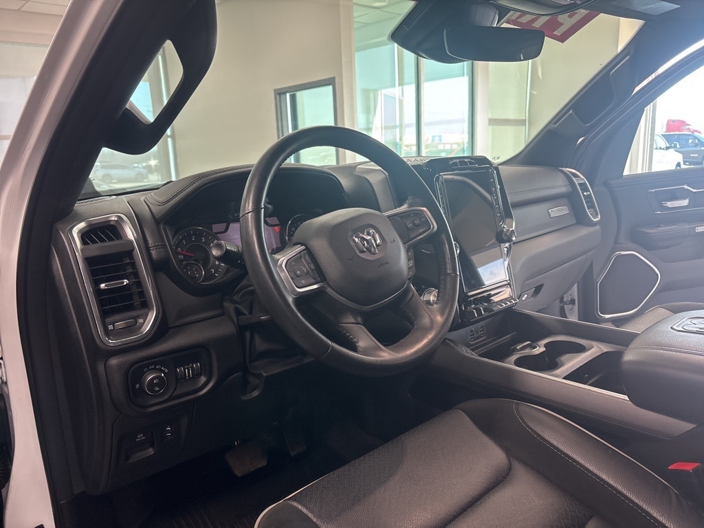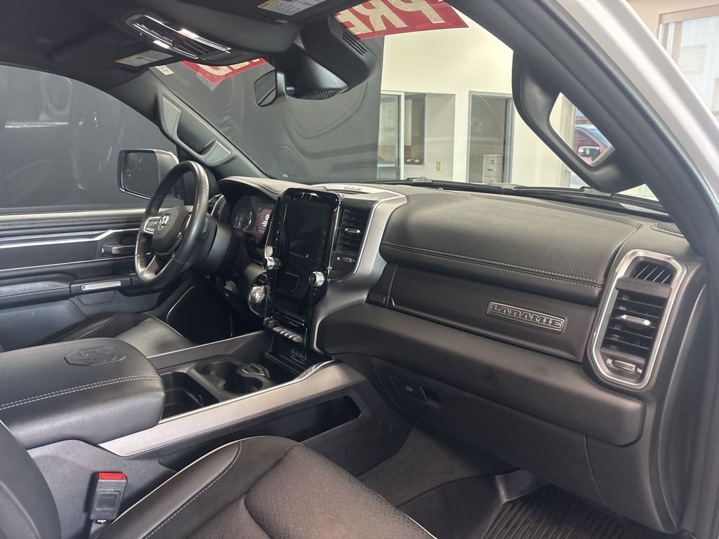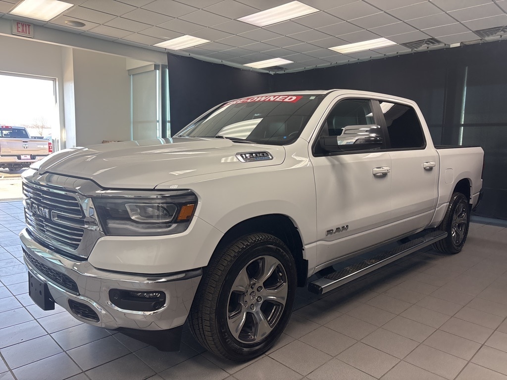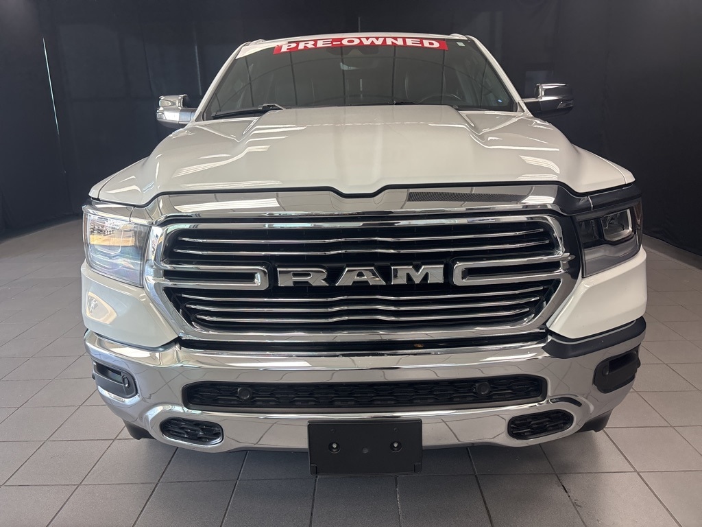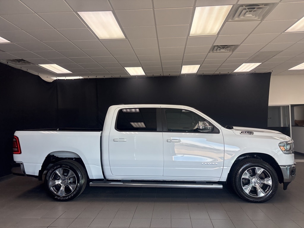 New Price! Clean CARFAX. Bright White Clearcoat Laramie 4WD 8-Speed Automatic HEMI 5.7L V8 Multi Displacement VVT eTorque **4WD**, **LOCAL TRADE**, **ONE OWNER**, **LEATHER INTERIOR**, **KEYLESS ENTRY**, **REMOTE START**, **HEATED / COOLED SEATS**, **RUNNING BOARDS**, **WE DELIVER ANYWHERE**, **REAR VIEW CAMERA**, **BLUETOOTH HANDES FREE CALLING**, **TOWING PACKAGE**, 10 Speakers, 2nd Row In Floor Storage Bins, 3 Rear Seat Head Restraints, 3.21 Rear Axle Ratio, 4 Way Front Headrests, 4-Wheel Disc Brakes, 48V Belt Starter Generator, 4G LTE Wi-Fi Hot Spot, ABS brakes, Air Conditioning, Alloy wheels, AM/FM radio: SiriusXM with 360L, Anti-Spin Differential Rear Axle, Apple CarPlay, Apple CarPlay/Android Auto, Audio memory, Auto High Beam Headlamp Control, Auto-dimming door mirrors, Auto-Dimming Exterior Driver Mirror, Auto-dimming Rear-View mirror, Automatic temperature control, Bed Utility Group, Blind Spot & Cross Path Detection, Brake assist, Bumpers: chrome, Chrome Exterior Mirrors, Class IV Receiver Hitch, Compass, Connected Travel & Traffic Services, Connectivity - US/Canada, Convex Wide-Angle Exterior Mirror Insert, Delay-off headlights, Driver door bin, Driver Seat Memory, Driver vanity mirror, Dual front impact airbags, Dual front side impact airbags, Electric Shift-On-Demand Transfer Case, Electronic Stability Control, Exterior Mirrors Courtesy Lamps, Exterior Mirrors w/Heating Element, Exterior Mirrors w/Memory, Exterior Mirrors w/Supplemental Signals, Foam Bottle Insert (Door Trim Panel), For Details, Visit DriveUconnect.com, For More Info, Call 800-643-2112, Front anti-roll bar, Front Center Armrest w/Storage, Front Door Accent Lighting, Front dual zone A/C, Front fog lights, Front LED Fog Lamps, Front License Plate Bracket, Front reading lights, Front Seat Back Map Pockets, Front wheel independent suspension, Fully automatic headlights, Garage door transmitter, Global Telematics Box Module (TBM), Google Android Auto, GPS Navigation, HD Radio, Heated door mirrors, Heated Front Seats, Heated front seats, Heated Second Row Seats, Heated Steering Wheel, Heated steering wheel, Illuminated entry, Integrated Voice Command w/Bluetooth, Laramie Level 1 Equipment Group, Leather steering wheel, Leather Trim 40/20/40 Bench Seat, LED Reflector Headlamps, Low tire pressure warning, Memory seat, MOPAR 4 Adjustable Cargo Tie-Down Hooks, MOPAR Front & Rear Rubber Floor Mats, MOPAR Spray In Bedliner, Navigation System, Occupant sensing airbag, Outside temperature display, Overhead airbag, Overhead console, Panic alarm, ParkSense Front/Rear Park Assist w/Stop, ParkSense Front/Rear Park Assist w/Stop (DISC), ParkView Rear Back-Up Camera, Passenger door bin, Passenger vanity mirror, Pick-Up Box Lighting, Power 2-Way Driver Lumbar Adjust, Power 2-Way Passenger Lumbar Adjust, Power 8-Way Driver & Passenger Seats, Power Adjustable Pedals w/Memory, Power door mirrors, Power driver seat, Power passenger seat, Power steering, Power windows, Power-Folding Mirrors, Quick Order Package 27H Laramie, Radio data system, Radio: Uconnect 5 Nav w/12.0" Display, Radio: Uconnect 5 Nav w/8.4" Display, Rain Sensitive Windshield Wipers, RAM Grille Badge - Chrome, Rear 60/40 Folding Seat, Rear anti-roll bar, Rear Door Accent Lighting, Rear Power Sliding Window, Rear seat center armrest, Rear step bumper, Rear Window Defroster, Remote keyless entry, Remote Tailgate Release, Security system, SiriusXM Radio Service, SiriusXM w/360L, Speed control, Split folding rear seat, Steering wheel mounted audio controls, Tachometer, Telescoping steering wheel, Tilt steering wheel, Traction control, Trailer Brake Control, Trip computer, Turn signal indicator mirrors, USB Host Flip, Variably intermittent wipers, Ventilated Front Seats, Ventilated front seats, Voltmeter, Wheel to Wheel Side Steps, Wheels: 18" x 8" Aluminum Base Painted, Wheels: 20" x 9" Premium Paint/Polished.